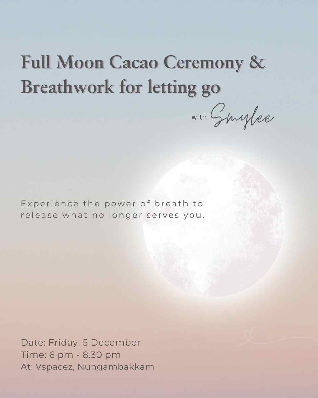"It was my first time doing a breathwork workshop and a cacao ceremony, and I wouldn't want to do it again with anyone but Smylee Nallalagu. Her workshop was so Calming, yet energetic and I felt a shift in me at the end of it. Smylee's energy was a THING to watch. She helps you set intentions powerfully, and guides you every step of the way through the process of breathwork🫂 There were times when I felt like things I had been avoiding were surfacing and it started getting very real, I felt tingling all over my face and some tiny convulsions in my hands, but Smylee was always around to help me ground, making me feel safe to feel things. I was able to hit the PAUSE I wanted for so long, in the comfort that Smylee creates in her workshop🙌 10/10, 5 stars to her, for helping me release the pain I held on so hard to, for so long. DEFINITELY coming back here, and Can't wait to experience her MAGIK again✨"