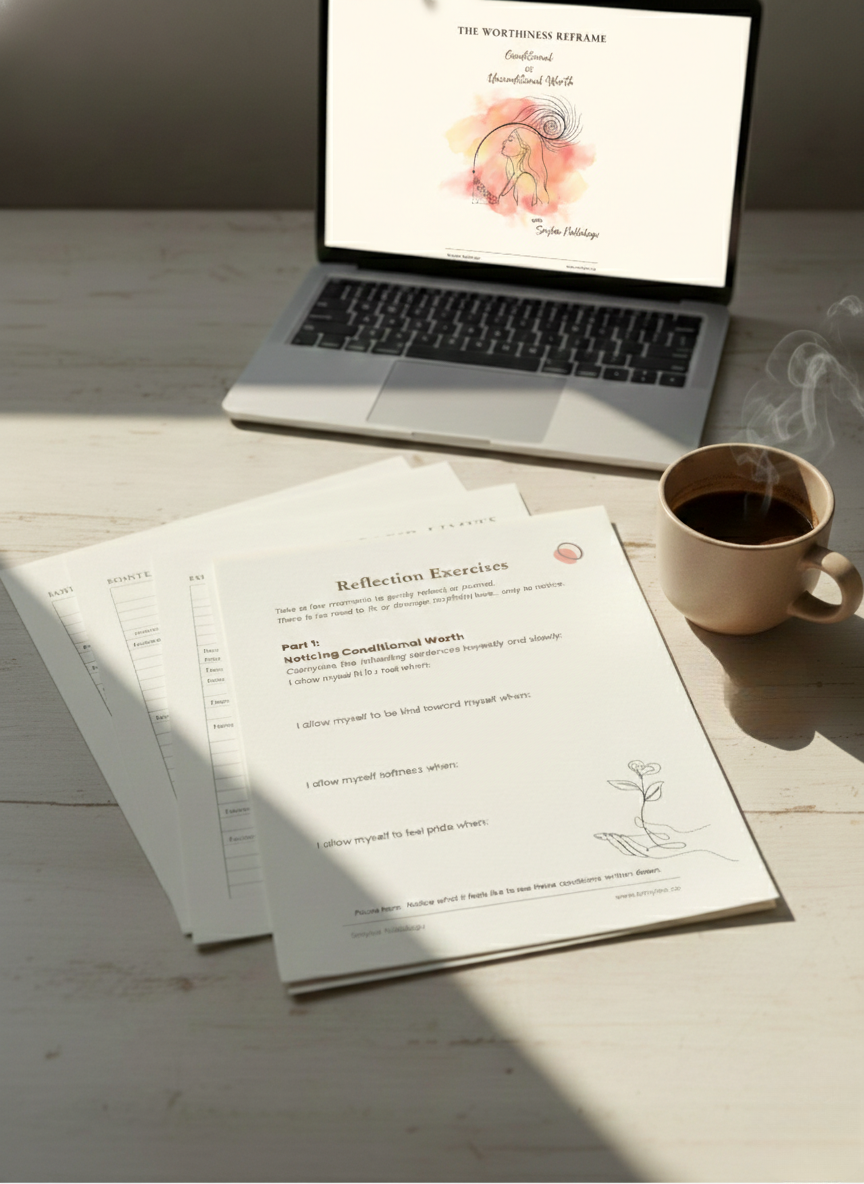 This is not a mindset reset or a quick confidence fix. It’s a quiet, nervous-system–aware reflection designed to help you notice where worth may have become conditional — and begin shifting your relationship to it with care.